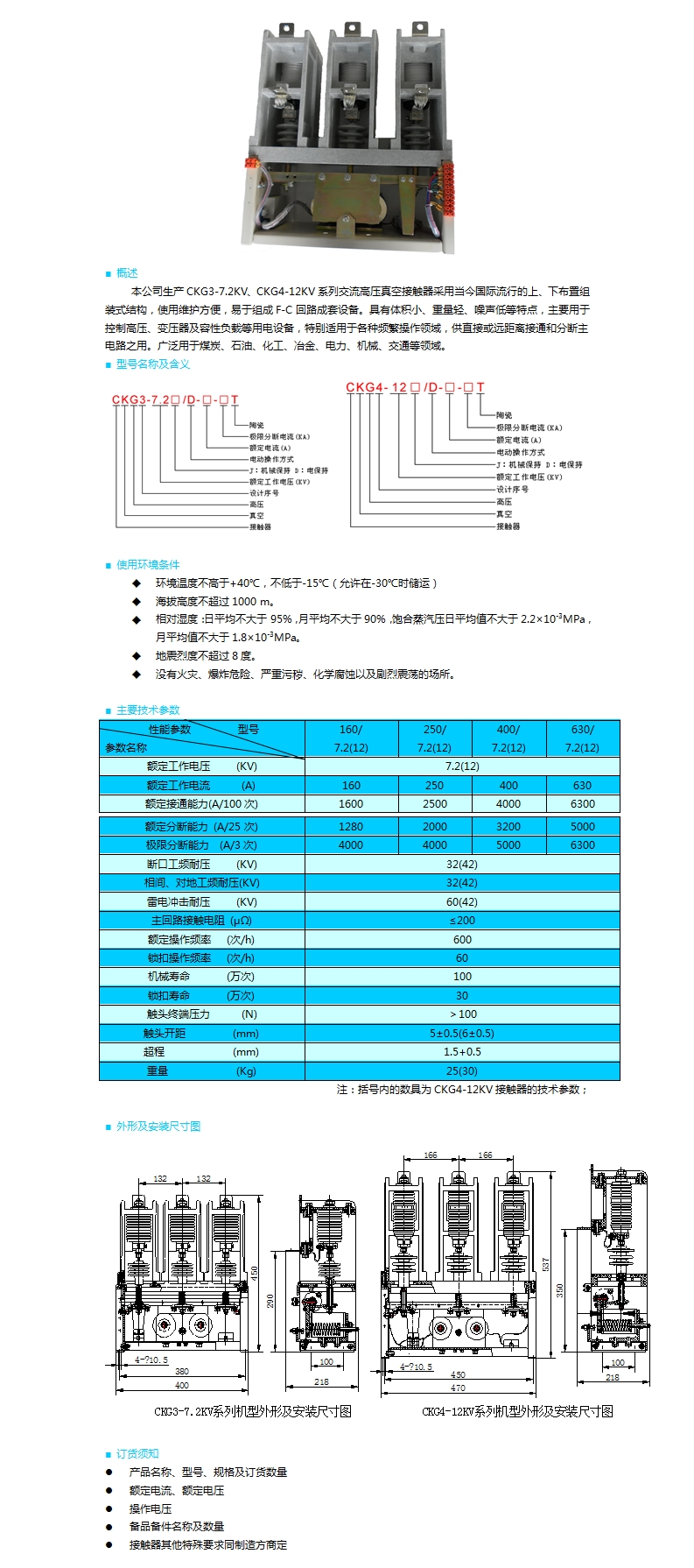 CKG□-7.2(12)交流真空接觸器